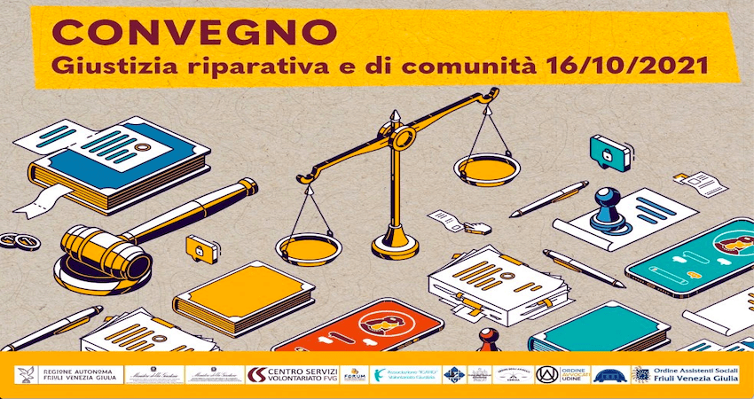 #CSVFVG in collaborazione con Regione Friuli Venezia Giulia, Forum Nazionale Terzo Settore Ordine Assistenti Sociali Friuli Venezia Giulia, Ministero della Giustizia – Ufficio Interdistrettuale di Esecuzione Penale Esterna per il Veneto, il Friuli Venezia Giulia, il Trentino Alto Adige/Südtirol, Ministero della Giustizia – Centro per la Giustizia Minorile per il Veneto, il Friuli Venezia Giulia e le Province Autonome di Trento e Bolzano, Ordine degli Avvocati di Udine, Odine degli avvocati di Gorizia, Ordine Avvocati Pordenone, Ordine degli avvocati di Trieste, ICARO – Associazione Volontariato Penitenziario, Conferenza Regionale Volontariato Giustizia FVG, organizza il convegno dedicato ad assistenti sociali, avvocati e ad altre categoria professionali di settore, dal titolo “giustizia ripartiva e giustizia di comunità”.